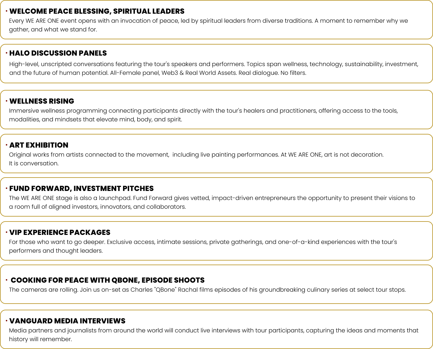 At a time of profound social disarray, him and this committee of partners, have come together under the overarching banner of unity and a 'one world' message, demonstrating that despite the divisive climate, these We Are One global impact disruptors who will be speaking truth to power across the planet on programmed panels, serve as “good citizens of the planet” which acts as the example all of us can follow.
